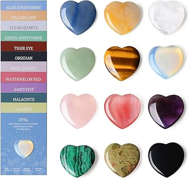 Reiki Gems Healing Crystals Amethyst Crystal Hearts Set Rose Quartz Heart Shaped Crystals Bulk Polished Gemstones? 12 pcs