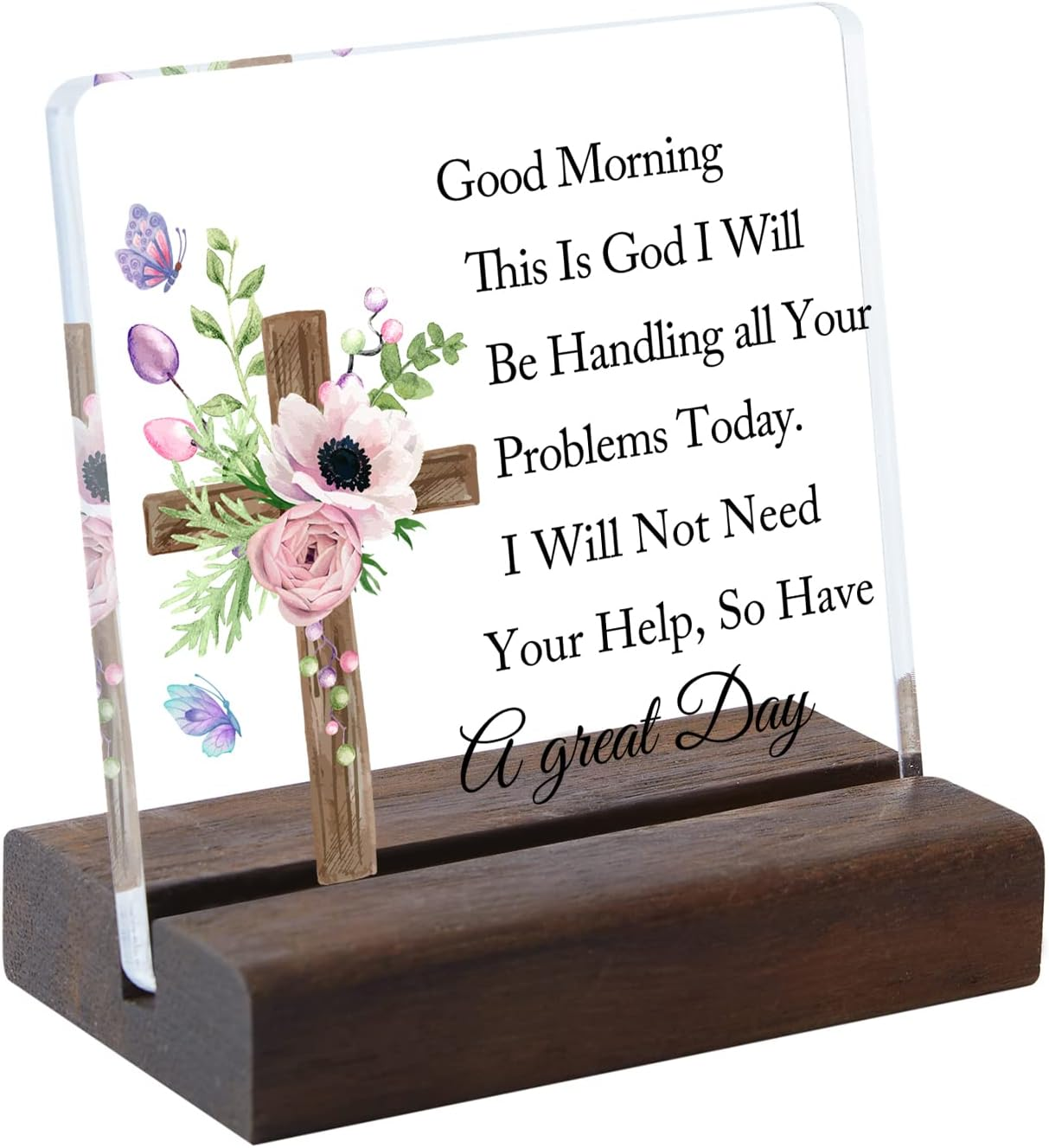 Christian Spiritual Gifts for Women – Birthday & Best Friend – Catholic Motivational Inspiration – Clear Plaque Sign With Wooden Stand