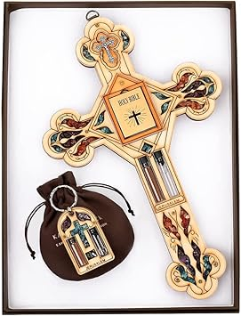 Holy Water Bible Symbols Protection Wooden Wall Blessing Plaque, Bring Calm Peace, Multicolor, 11” Height