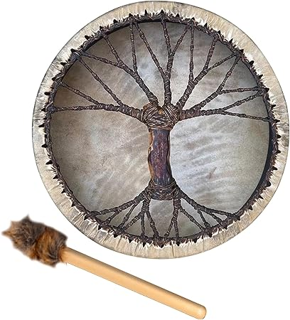 Hand Drum With Drum Stick Tree of Life Sound Healing Tool For Spiritual Music, Reflection Meditation(Tree of Life)